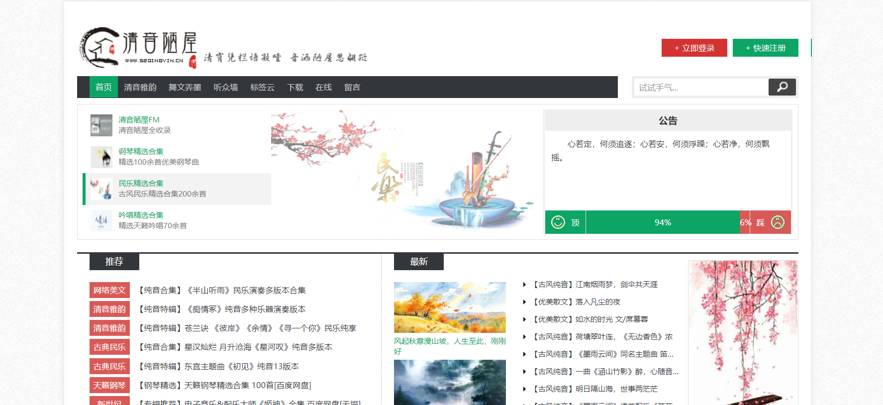 清音陋屋属于非盈利性的个人纯音乐分享网站,主要为喜欢轻音乐、纯音乐的朋友创建,其主要内容为忧伤轻音乐、影视配乐、忧伤散文,清音陋屋网站创建总结为“用耳聆听,用心感受”。 文章版权及转载声明: 作者:admin本文地址:https://dh.2714ai.cn/post/319.html发布于 03-20文章转载或复制请以超链接形式并注明出处2714导航 标签: 清音 陋屋 优美
