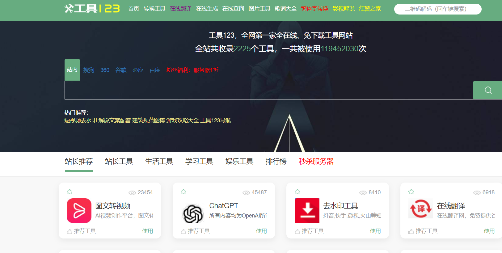 目前集合了1800个在线小工具,包括:站长工具、娱乐工具、文件转换工具等等在线实用工具,而且是免费使用的哟,赶快来体验吧!