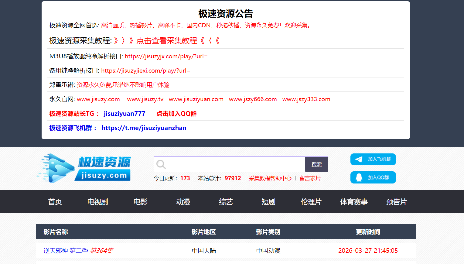 极速资源采集站 电影 电视剧 动漫 影视资源一网打尽 文章版权及转载声明: 作者:admin本文地址:https://dh.2714ai.cn/post/346.html发布于 03-27文章转载或复制请以超链接形式并注明出处2714导航 标签: 极速 资源